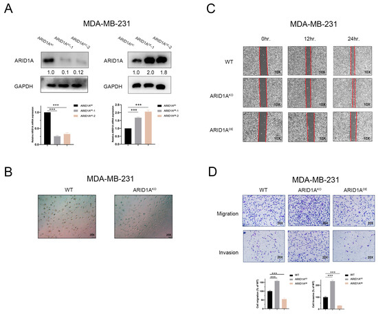 3.2. Inhibition of ARID1A Promotes Migration and Invasion in TNBC Cells