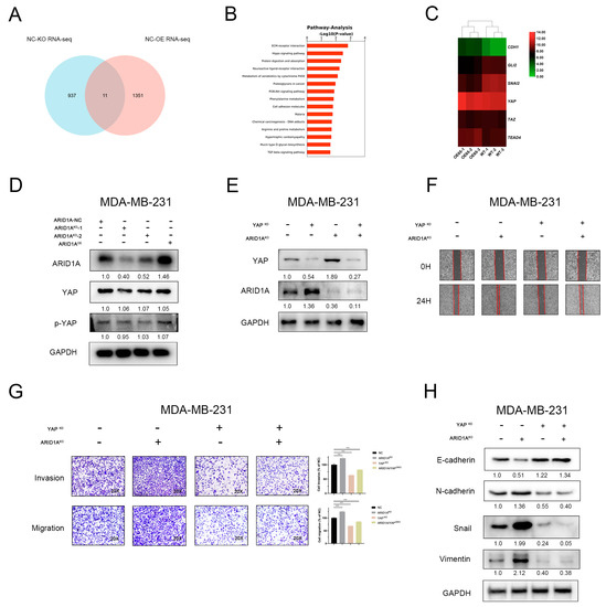 3.5. YAP and Hippo Pathway Involved in ARID1A-Regulated EMT and Tumour Metastasis