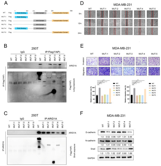 3.6. ARID1A Competitively Binds YAP to Form ARID1A/YAP Complex
