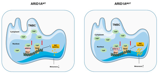 Wang, Y.; Chen, X.; Qiao, X.; Xie, Y.; Guo, D.; Li, B.; Cao, J.; Tao, Z.; Hu, X. Chromatin Remodelling Molecule ARID1A Determines Metastatic Heterogeneity in Triple-Negative Breast Cancer by Competitively Binding to YAP. Cancers 2023, 15, 2447. https://doi.org/10.3390/cancers15092447