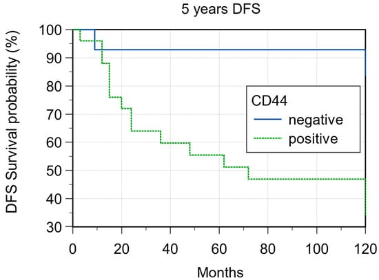 Five-year disease-free survival according to CD44 expression (p = 0.008).