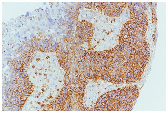 - Wusiman, D.; Guo, L.; Huang, Z.; Li, Z.; Liu, S.; Ying, J.; Li, W.; An, C. The Clinicopathological Significance of PD-L1 Expression Assessed by the Combined Positive Score (CPS) in Head and Neck Squamous Cell Carcinoma. Pathol. Res. Prac. 2022, 236, 153934. [Google Scholar] [CrossRef]