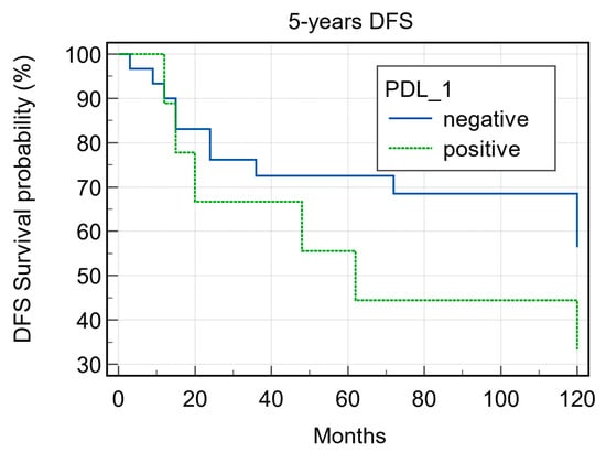 Five-year disease-free survival according to PD1 expression (p = 0.22).