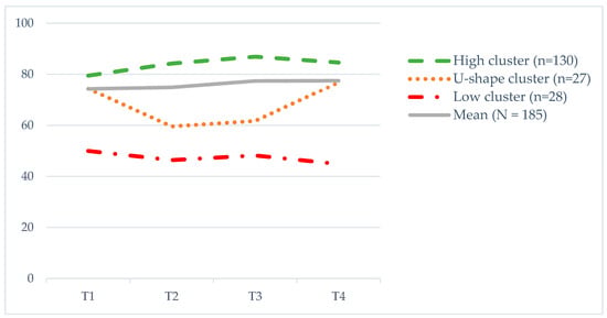 | High Cluster (n = 130) | U-Shape Cluster (n = 27) | Low Cluster (n = 28) | |