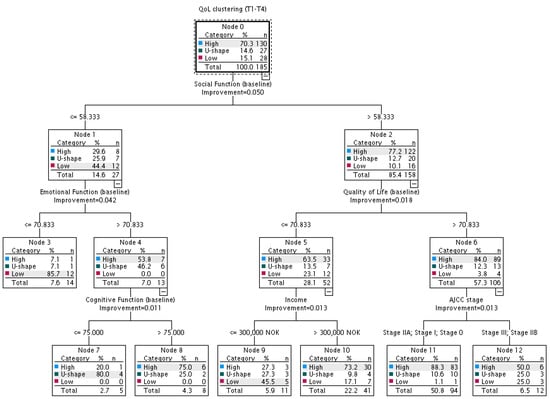 Chicago/Turabian StyleLazarewicz, Magdalena Anna, Dorota Wlodarczyk, and Randi Johansen Reidunsdatter. 2023. "Decision Tree Analyses for Prediction of QoL over a One-Year Period in Breast Cancer Patients: An Added Value of Patient-Reported Outcomes" Cancers 15, no. 9: 2474. https://doi.org/10.3390/cancers15092474