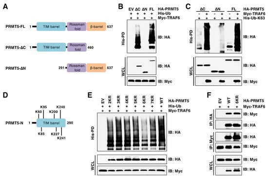 3.3. TRAF6 Promotes Ubiquitination of PRMT5 on Multiple Lysine Residues