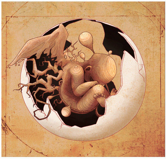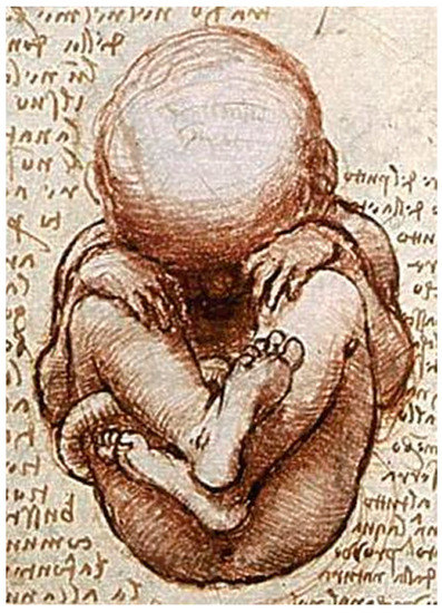 A fetus in the womb, by Leonardo da Vinci, circa 1510. https://commons.wikimedia.org/wiki/File:Views_of_a_Foetus_in_the_Womb_detail.jpg (accessed on 28 January 2023).