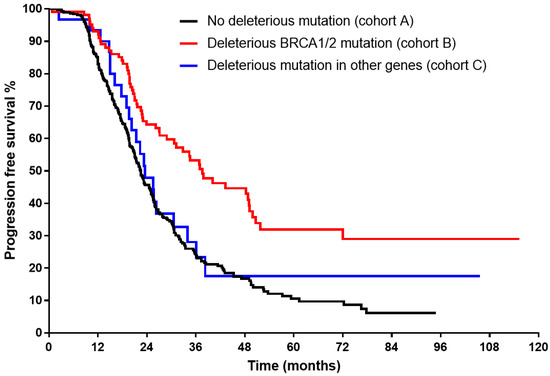 In the last decade, the role of targeted maintenance therapy became a main issue, and several phase III studies have shown a prognostic benefit of poly (ADP-ribose) polymerase inhibitors (PARP-i) in selected cohorts with genomic mutations/instability (germline or somatic) [11,12,13]. Thus, multiple gene panel testing has been performed more often to identify genomic and molecular alterations, which could be optional disease drivers and markers for benefit from targeted maintenance therapies.