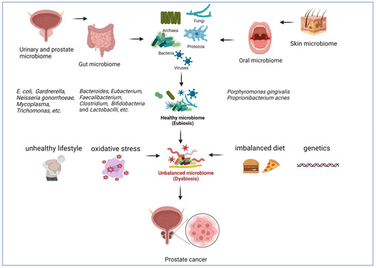 In this review, we examine the new research on the effects of bacteria colonizing several regions of the human body, including the gastrointestinal tract, the urinary and reproductive systems, the oral cavity, and the skin, upon the installation and development of Pca (Figure 1). Additionally, we explore ways of assessing, preventing, and improving the treatment of Pca by targeting the microbiota.