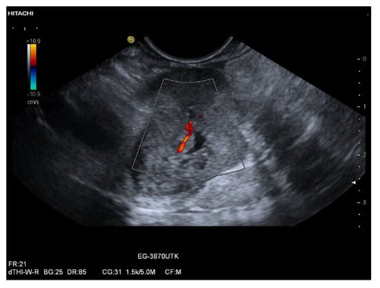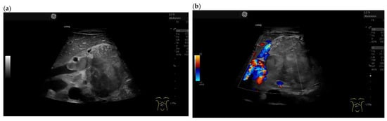 Lesion diameter may vary, with or without pancreatic duct involvement []. Of 23 patients with various intrapancreatic metastases, only 20% had pancreatic ductal dilation []. The lesions may be single or multiple [,,]. Pancreatic metastases tend not to infiltrate into adjacent vessels []. Nevertheless, there may be exceptions (Figure 1). RCC metastases are usually hypervascular. This can already be detected on color and power Doppler Imaging [].