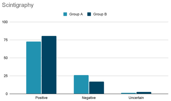 Regarding diagnostic preoperative localization, the findings are shown in Figure 1 and Figure 2. No significant differences have been observed comparing US and Scintigraphy results between group A and B.