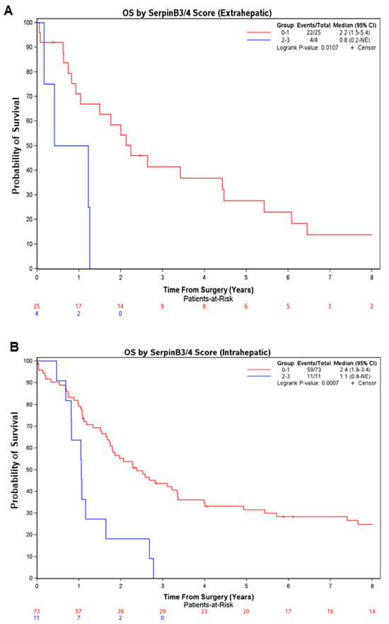 3.3. SerpinB3/4 Score and Prognosis of Cholangiocarcinoma
