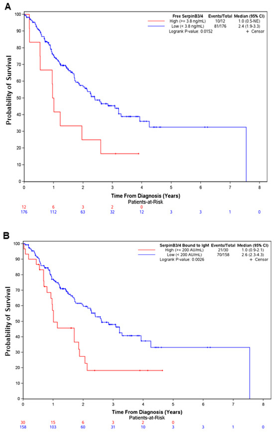 3.5. SerpinB3/4 in Serum and Patient Survival