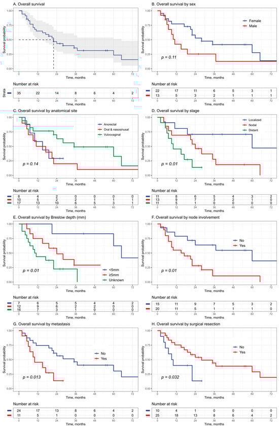 - Heppt, M.V.; Roesch, A.; Weide, B.; Gutzmer, R.; Meier, F.; Loquai, C.; Kähler, K.C.; Gesierich, A.; Meissner, M.; von Bubnoff, D.; et al. Prognostic factors and treatment outcomes in 444 patients with mucosal melanoma. Eur. J. Cancer Oxf. Engl. 2017, 81, 36–44. [Google Scholar] [CrossRef]