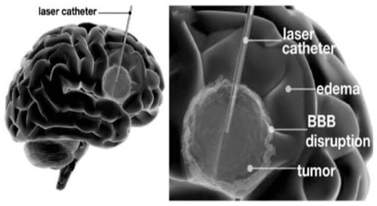 - Salehi, A.; Paturu, M.R.; Patel, B.; Cain, M.D.; Mahlokozera, T.; Yang, A.B.; Lin, T.H.; Leuthardt, E.C.; Yano, H.; Song, S.K.; et al. Therapeutic enhancement of blood-brain and blood-tumor barriers permeability by laser interstitial thermal therapy. Neurooncol. Adv. 2020, 2, vdaa071. [Google Scholar] [CrossRef]