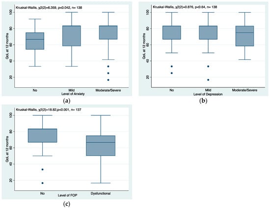 (a–c) Association between quality of life at 12 months and levels of anxiety, depression and FOP.
