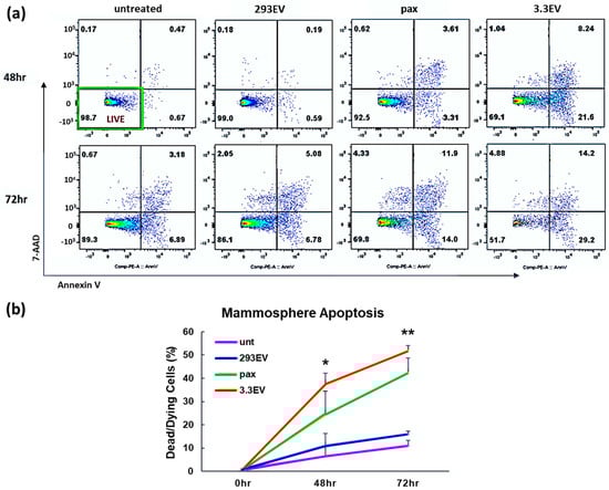 3.3. NK3.3-Derived EVs Induce Apoptosis of MCF7 Cells in Mammospheres
