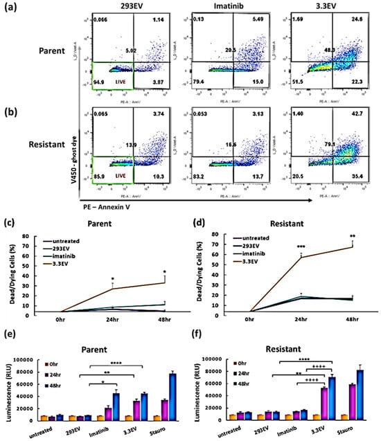 3.6. NK3.3-Derived EVs Induce Apoptotic Death in Imatinib-Resistant K562 Cells