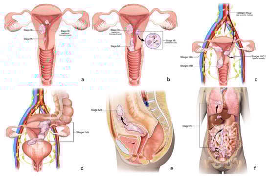 Stage IIIC can be further subclassified based on micro- and macrometastasis. Micrometastasis is defined as lesions that are 0.2–2 mm in size and/or more than 200 cells, while macrometastasis is larger than 2 mm. Micrometastasis is indicated as an “i” notation, and macrometastasis is marked as an “ii” notation. For example, a patient’s lesion involving micrometastasis to pelvic lymph nodes is categorized as IIIC1i. These differences are shown in Table 4.
