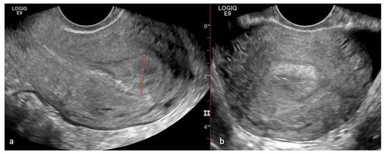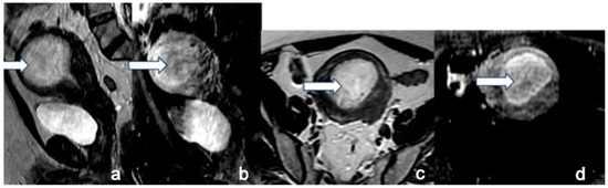- Robbins, J.B.; Sadowski, E.A.; Maturen, K.E.; Akin, E.A.; Ascher, S.M.; Brook, O.R.; Cassella, C.R.; Dassel, M.; Henrichsen, T.L.; Learman, L.A.; et al. ACR Appropriateness Criteria® Abnormal Uterine Bleeding. J. Am. Coll. Radiol. 2020, 17, S336–S345. [Google Scholar] [CrossRef]