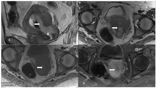 - Bi, Q.; Bi, G.; Wang, J.; Zhang, J.; Li, H.; Gong, X.; Ren, L.; Wu, K. Diagnostic Accuracy of MRI for Detecting Cervical Invasion in Patients with Endometrial Carcinoma: A Meta-Analysis. J. Cancer 2021, 12, 754–764. [Google Scholar] [CrossRef]