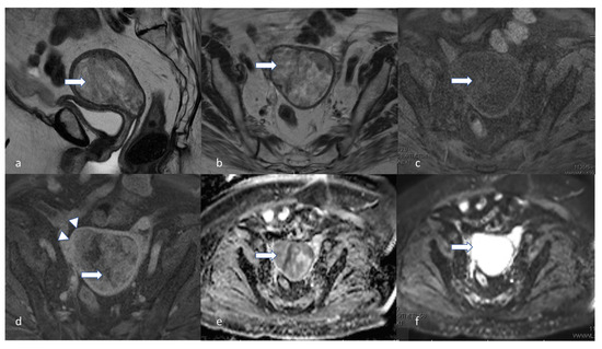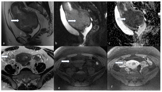 - Nougaret, S.; Reinhold, C.; Alsharif, S.S.; Addley, H.; Arceneau, J.; Molinari, N.; Guiu, B.; Sala, E. Endometrial Cancer: Combined MR Volumetry and Diffusion-weighted Imaging for Assessment of Myometrial and Lymphovascular Invasion and Tumor Grade. Radiology 2015, 276, 797–808. [Google Scholar] [CrossRef]
