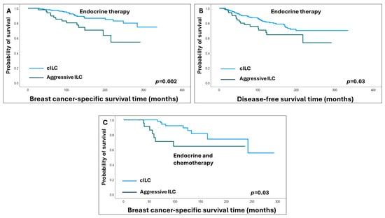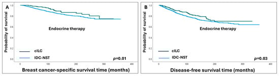- Truin, W.; Voogd, A.C.; Vreugdenhil, G.; van der Heiden-van der Loo, M.; Siesling, S.; Roumen, R.M. Effect of adjuvant chemotherapy in postmenopausal patients with invasive ductal versus lobular breast cancer. Ann. Oncol. 2012, 23, 2859–2865. [Google Scholar] [CrossRef]
