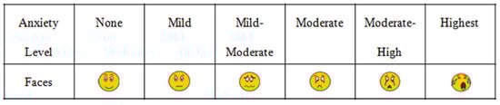 A novel six-tier visual facial anxiety scale for assessing preoperative fear was utilized as previously described by X. Cao (Figure 2) [15]. This visual analogue scale correlated well with Spielberger’s State-Trait Anxiety Inventory questionnaire score [8].