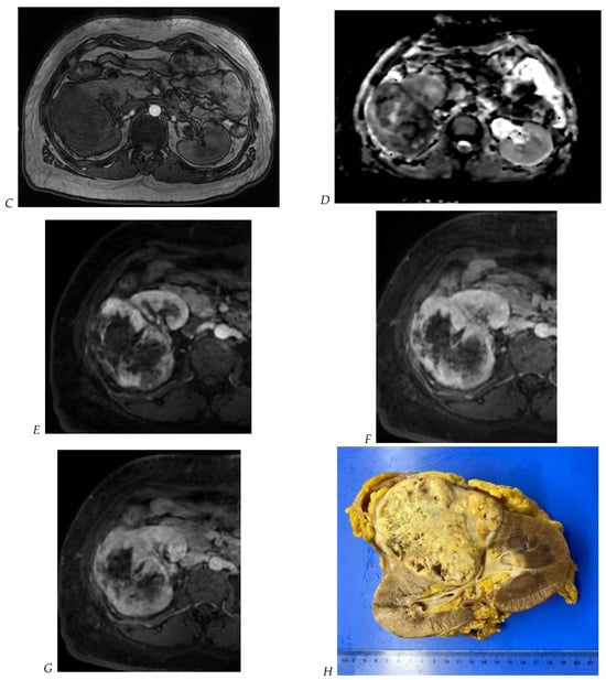 - Lopes Vendrami, C.; Parada Villavicencio, C.; DeJulio, T.J.; Chatterjee, A.; Casalino, D.D.; Horowitz, J.M.; Oberlin, D.T.; Yang, G.Y.; Nikolaidis, P.; Miller, F.H. Differentiation of solid renal tumors with multiparametric MR Imaging. Radiographics 2017, 37, 2026–2042. [Google Scholar] [CrossRef] [PubMed]
