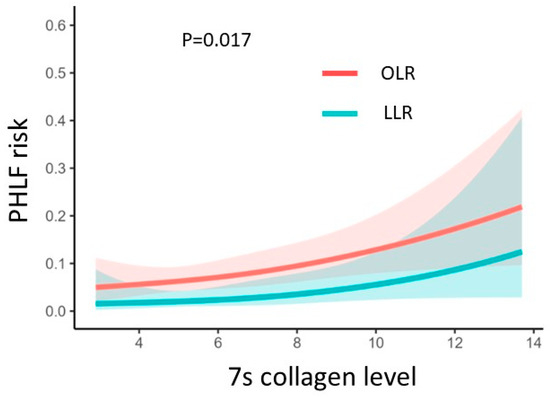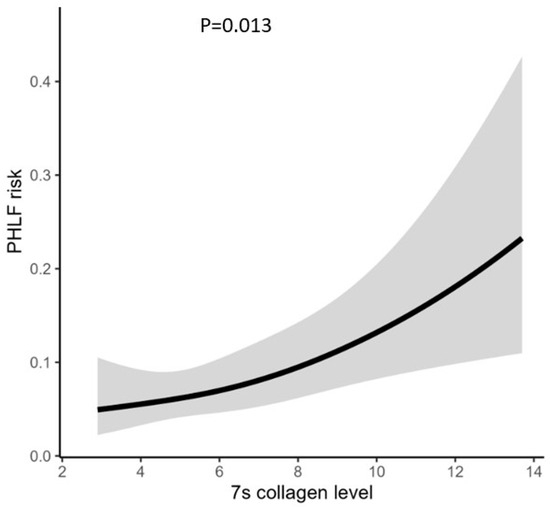 3.2. Association between Preoperative 7s Collagen Level and PHLF