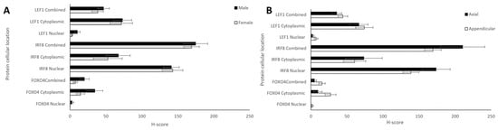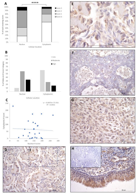 | Protein (n = 26) | Cellular Location | Mean ± SEM | p-Value (Cytoplasmic vs. Nuclear) | Range (Min-Max) |