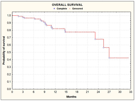 Kaplan–Meier plots illustrating overall survival among the enrolled patients.