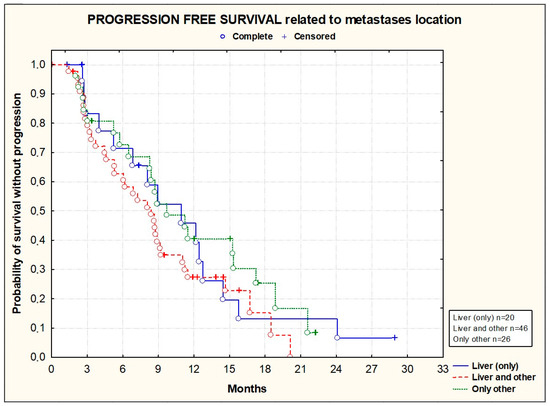 Kaplan–Meier plots illustrating progression-free survival according to primary metastasis location (p = 0.4330; Chi2 test).