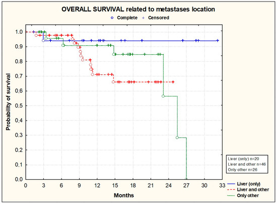 Kaplan–Meier plots illustrating overall survival according to metastasis location (p = 0.2265; Chi2 test).