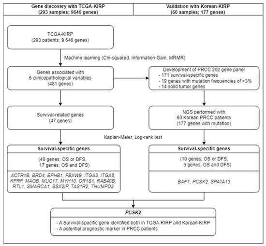 Hwang, J.; Bang, S.; Choi, M.H.; Hong, S.-H.; Kim, S.W.; Lee, H.E.; Yang, J.H.; Park, U.S.; Choi, Y.J. Discovery and Validation of Survival-Specific Genes in Papillary Renal Cell Carcinoma Using a Customized Next-Generation Sequencing Gene Panel. Cancers 2024, 16, 2006. https://doi.org/10.3390/cancers16112006