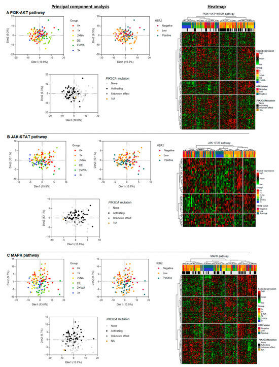 3.4. Global Gene Expression and Phenotypic Profiles within the Different Pathways, and the Impact of PIK3CA Activating Mutations