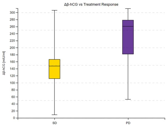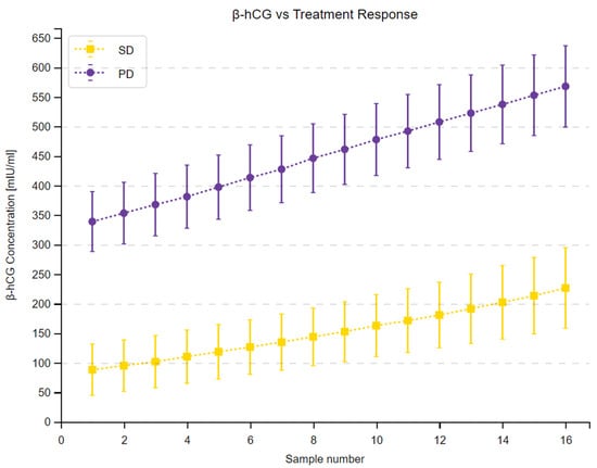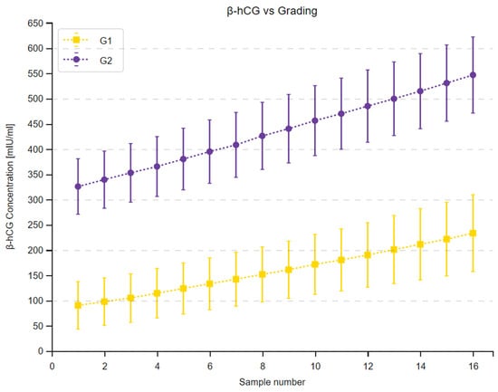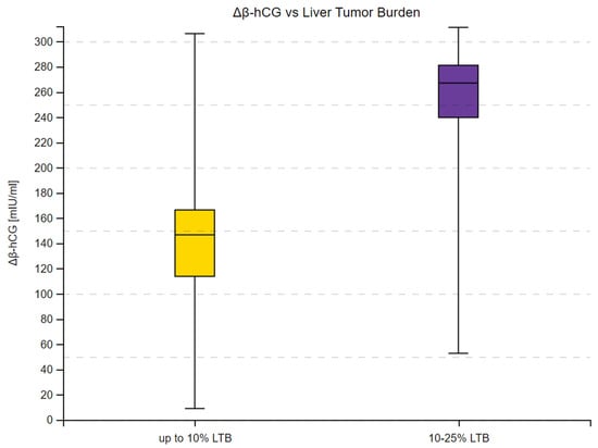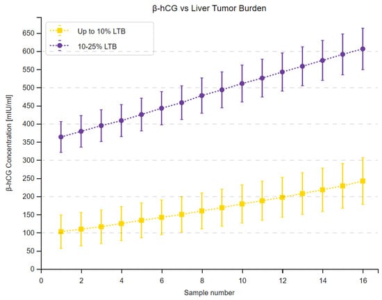 3.2. β-hCG Concentration Depending on Tumor Malignancy