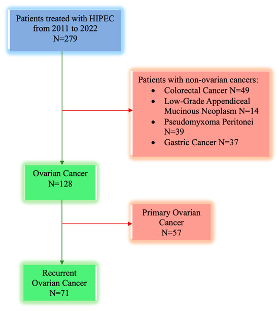 22. Spiliotis, J.; Halkia, E.; Lianos, E.; Kalantzi, N.; Grivas, A.; Efstathiou, E.; Giassas, S. Cytoreductive surgery and HIPEC in recurrent epithelial ovarian cancer: A prospective randomized phase III study. Ann. Surg. Oncol. 2015, 22, 1570–1575. [Google Scholar] [CrossRef]