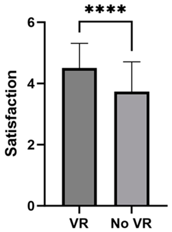 In addition to these assessments, patients in the IG were administered a questionnaire aimed at evaluating their acceptance and comfort level with the VR experience. The questionnaire encompassed inquiries concerning various aspects of the VR immersion, seeking insights into its overall acceptability and impact on the patient’s procedural experience: