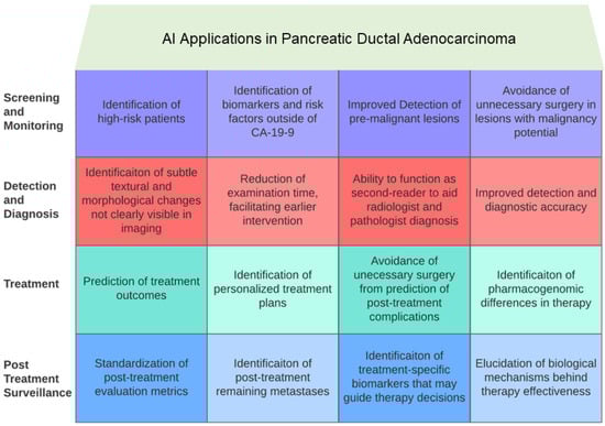 - Schuurmans, M.; Alves, N.; Vendittelli, P.; Huisman, H.; Hermans, J.; Litjens, G.; Chang, D.; Verbeke, C.; Malats, N.; Löhr, M. Artificial intelligence in pancreatic ductal adenocarcinoma imaging: A commentary on potential future applications. Gastroenterology 2023, 165, 309–316. [Google Scholar] [CrossRef]