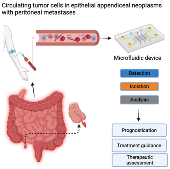 So far, CTCs have not been studied in patients with appendiceal neoplasms. A search in PubMed only revealed a recent published abstract as a systematic review for patients with appendiceal neoplasms and the role of circulating tumor DNA [31]. This abstract concluded that ctDNA was observed in more poorly differentiated appendiceal cancers. Patients with peritoneal metastases often respond poorly to current treatment [15]. An improved understanding of the molecular biology and the microenvironment of the tumor may provide insights into how we can devise more effective treatment. Hopefully, CTC-based assays may, in the future, give us important prognostic and predictive information [32].