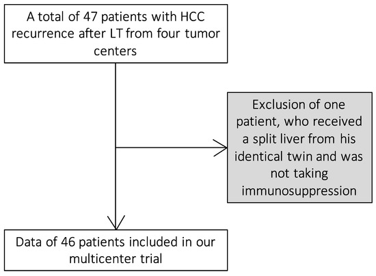 Patients with HCC recurrence after LT represent a special subgroup among patients with HCC. Whereas the usually underlying liver cirrhosis is a crucial prognostic factor, patients after LT usually have significantly improved liver function.