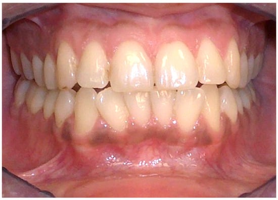 The so-called “amalgam tatoo”, greyish pigmentation of the marginal gingival from particles of an amalgam of the previous dental restoration of upper premolar teeth sprayed during the preparation of the prosthetic abutments in a 67-year-old patient. Patient refers to these lesions as being present for 20 years. (archive S.A., patient signed the consent for clinical pictures).