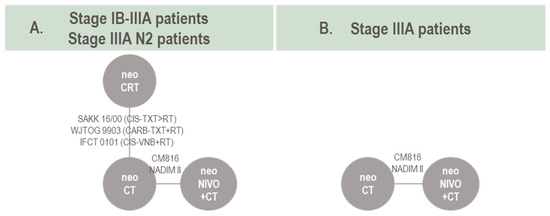 - Provencio, M.; Nadal, E.; Gonzáles-Larriba, J.L.; Martinez-Marti, A.; Bernabé, R.; Bosch-Barrera, J.; Casal-Rubio, J.; Calvo, V.; Insa, A.; Ponce, S.; et al. Nivolumab + chemotherapy (CT) vs. CT as neoadjuvant treatment for resectable stage IIIA-B non-small cell lung cancer (NSCLC): NADIM II trial. In Proceedings of the ASCO, Chicago, IL, USA, 3–7 June 2022. [Google Scholar]