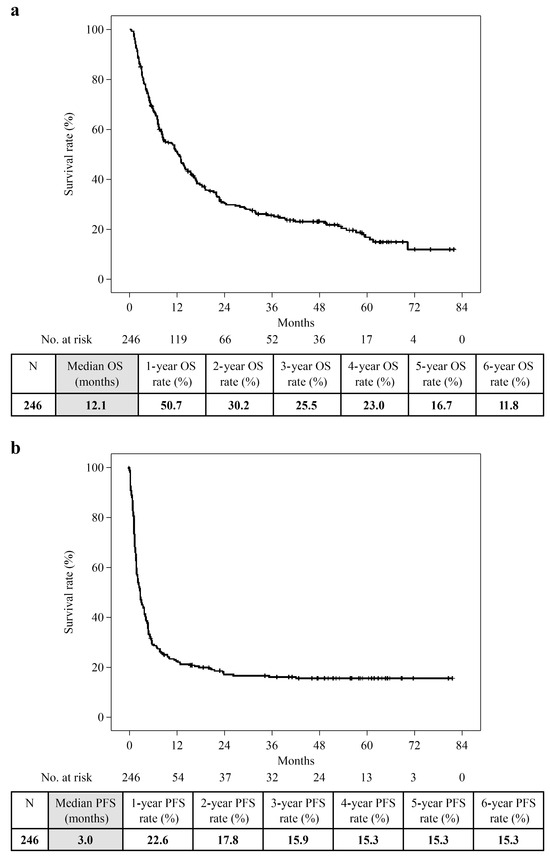 - Tahara, M.; Kiyota, N.; Nibu, K.I.; Akamatsu, A.; Hoshino, T.; Hayashi, R. Real-world safety and effectiveness of nivolumab for recurrent or metastatic head and neck cancer in Japan: A post-marketing surveillance. Int. J. Clin. Oncol. 2021, 26, 1619–1627. [Google Scholar] [CrossRef] [PubMed]