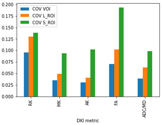 The coefficient of variation (COV) is a robust standardized measure of distribution and is expressed as the ratio between the standard deviation and the mean. COV is widely used in the fields of analytical chemistry, engineering, or physics to express the precision and repeatability of measurements, including diffusion-related metrics [26].