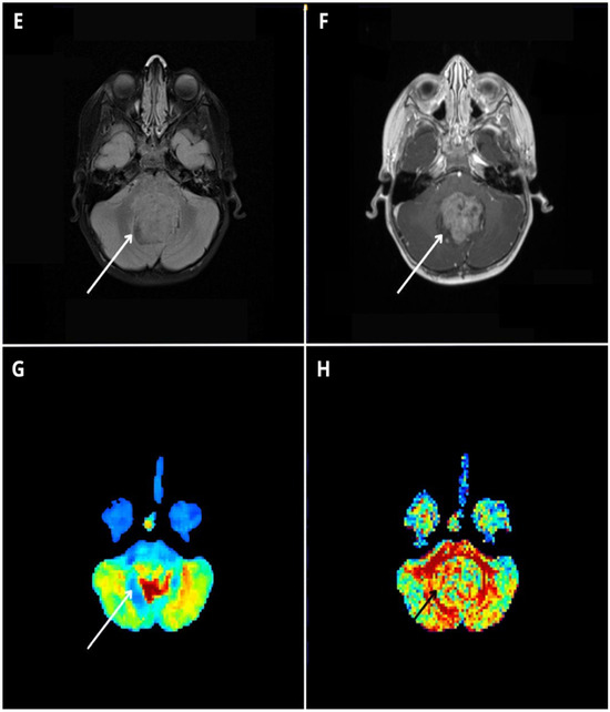 - Brandão, L.A.; Poussaint, T.Y. Posterior Fossa Tumors. Neuroimaging Clin. N. Am. 2017, 27, 1–37. [Google Scholar] [CrossRef] [PubMed]