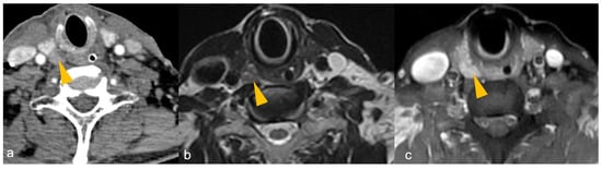 - Mahajan, A.; Shukla, S.; Ankathi, S.K.; Shukla, A.; Vaish, R.; Suryavanshi, S.; Agarwal, U.; Patil, V.; Sahu, A.; Padashetty, S.; et al. Imaging Recommendations for Diagnosis, Staging, and Management of Cancer of the Thyroid, Parathyroid, and Salivary Glands. Indian. J. Med. Paediatr. Oncol. 2023, 44, 159–174. [Google Scholar] [CrossRef]