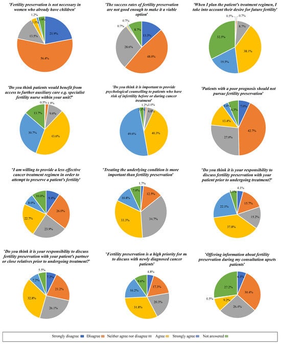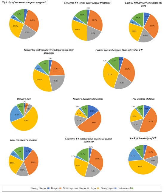 Other prominent barriers to implementing FP in our study included perceived distress following a diagnosis and the patient’s age. This is consistent with a study where HCPs perceived that initiating discussions of FP, or the potential loss of fertility due to cancer treatment would increase the patient’s or family member’s anxiety when they were already in a state of shock from their diagnosis [23]. Such feelings lead to avoidance behaviour, where HCPs do not discuss important aspects of care during their consultation. However, given that a small proportion of the cohort agreed or strongly agreed that ‘offering information about FP upsets patients,’ suggests that HCPs may recognise this is a concern, but equally deem it a necessity to still engage in discussions regardless. A recent systematic review also highlighted factors such as age, relationship status and sociodemographic factors influence HCP discussions about FP, resulting in biased clinical practice [48]. However, in view of many individuals now delaying childbearing, increased rates of divorce, second marriages and the evolving modern family structure, it is important to challenge such misconceptions and beliefs amongst HCPs. The majority of HCPs reported they would offer FP to women aged between 36 and 50 and overall disagreed with the statement ‘FP is not necessary in women who already have children,’ suggesting that they are aware of the above misconceptions and mindful that many women delay childbearing. Regardless of the patient’s sociodemographic background, all patients of reproductive age are entitled to receive information and support about FP.