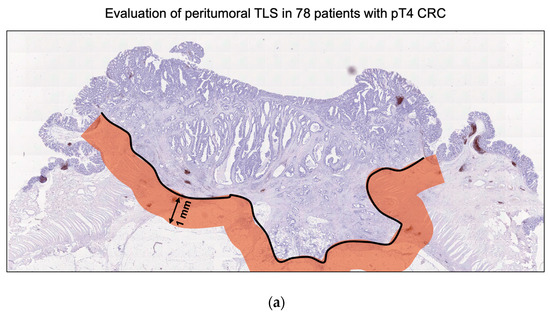 Recently, many researchers have highlighted the significance of the tumor microenvironment (TME) in cancer progression, patient prognosis, and therapeutic resistance [4]. Among the various components of the TME, tertiary lymphoid structures (TLSs) have gained attention for their potential role in predicting patient prognosis and enhancing antitumor immunity through antigen presentation and production of tumor-specific antibodies [5,6]. These structures, which resemble secondary lymphoid organs, including the spleen and lymph nodes, are composed of B and T cell zones and are found in chronically inflamed or cancerous tissues [7]. It has been reported that the presence of TLS in tumor tissues is associated with good prognosis in several cancers, including CRC [8,9,10,11]. In contrast, not only TLS densities but also maturity levels have been reported to be important in the regulation of antitumor immunity, which contributes to the prognosis and treatment resistance of cancer patients [12,13].